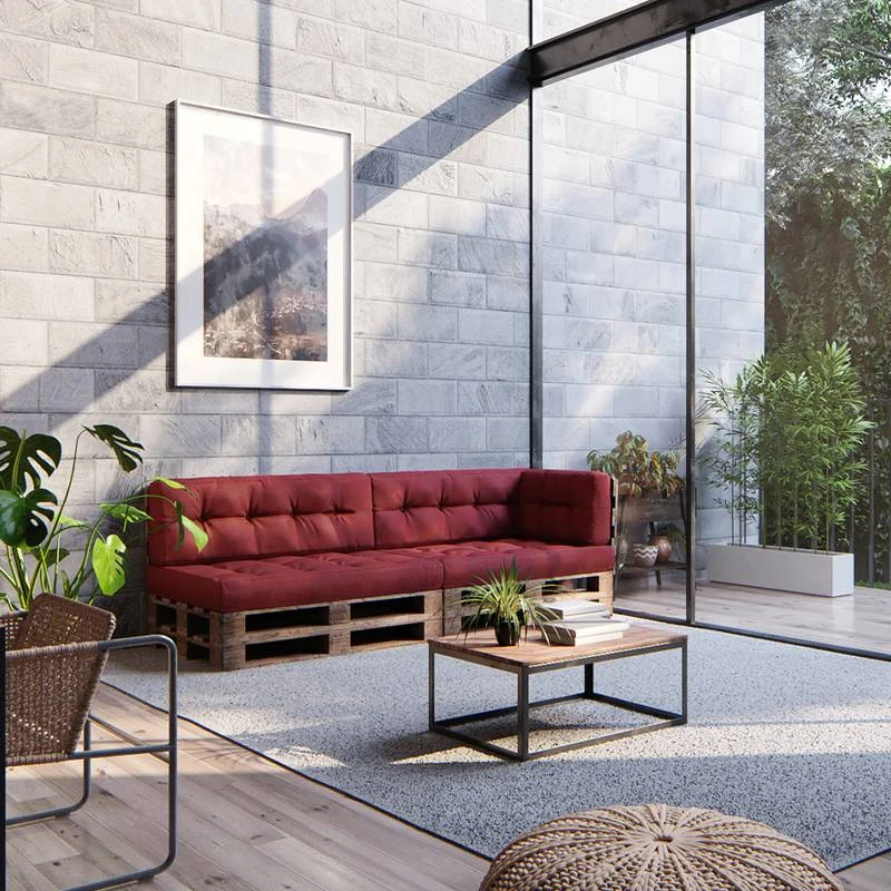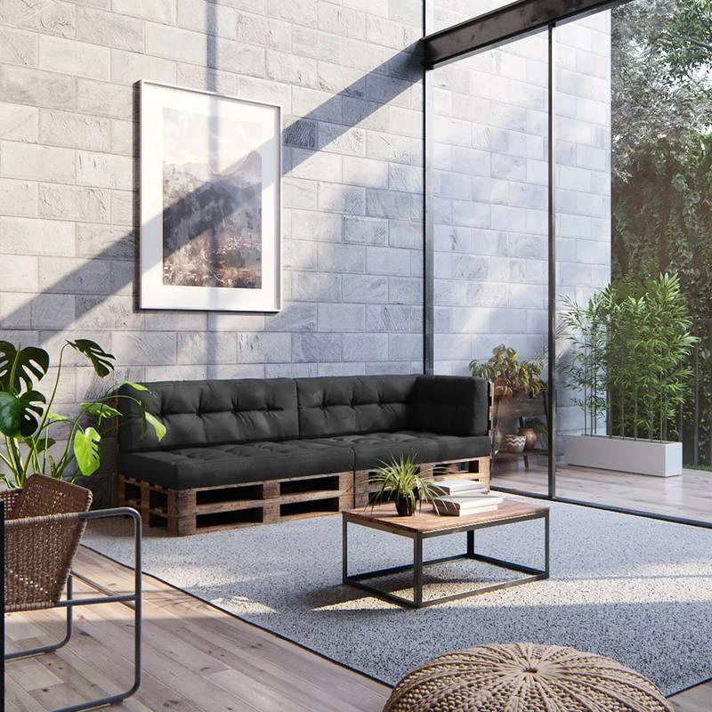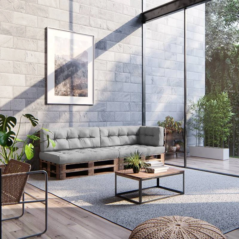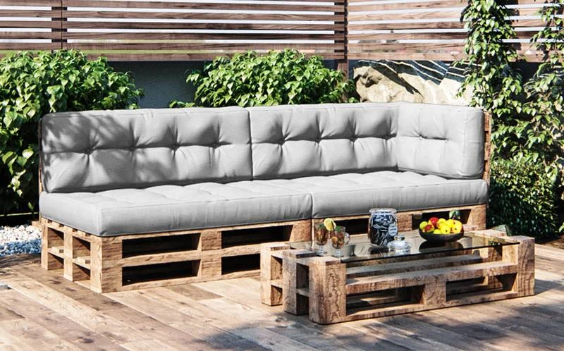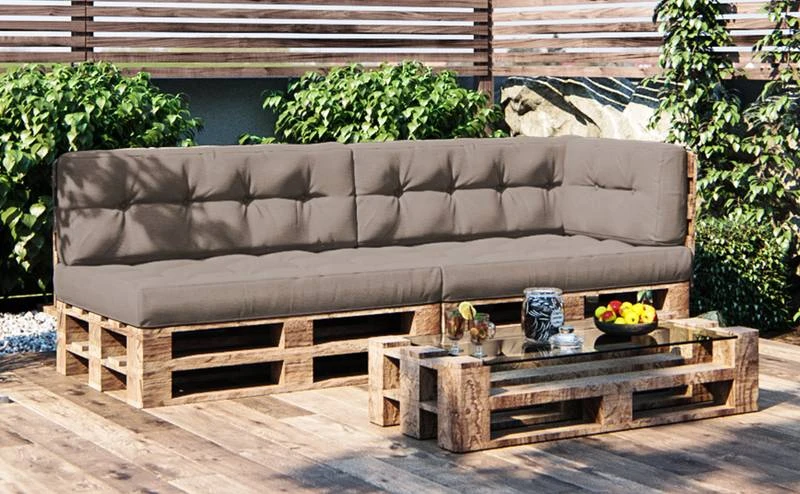 - Contenu de la livraison : • 2x coussin de siège • 2x coussin de dossier • 1x coussin latĂ©ral Remarque : la dĂ©coration et palettes n’est pas incluse.