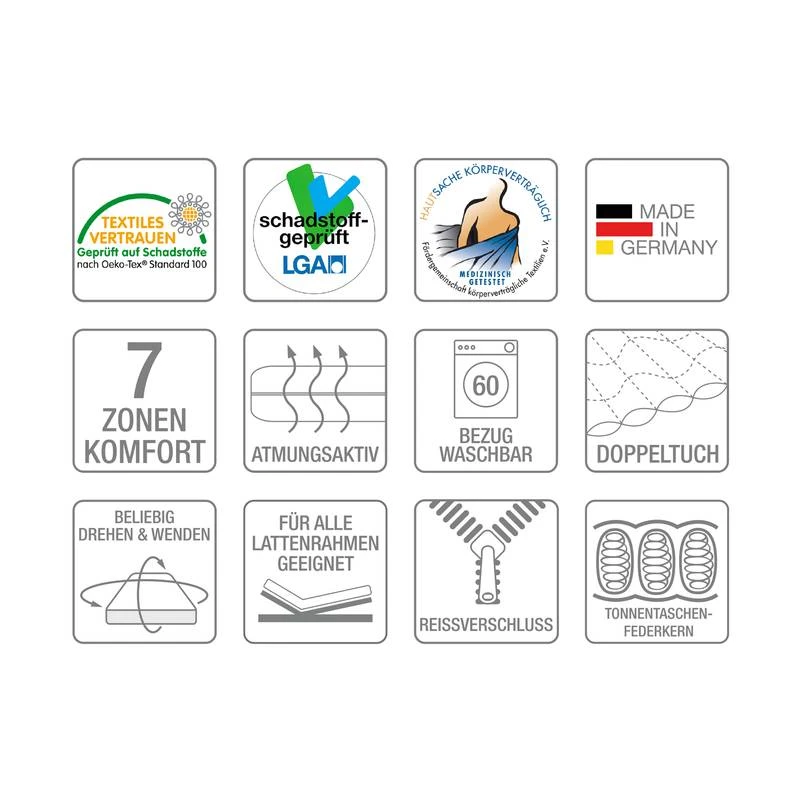 - Certifié par le label allemand « Textiles Vertrauen » : tissus sans substances nocives selon la norme écologique Öko-Tex Standard 100