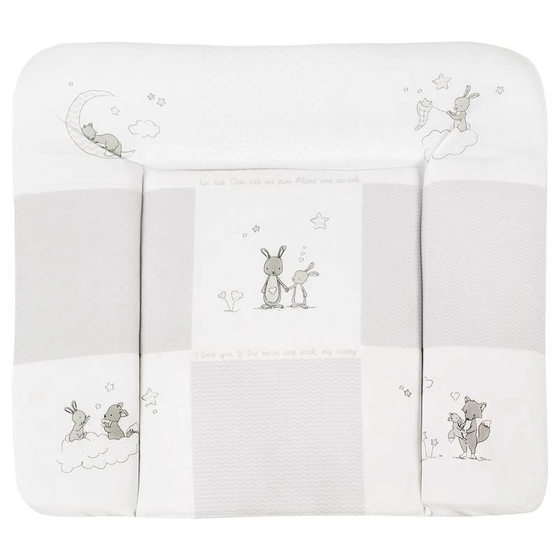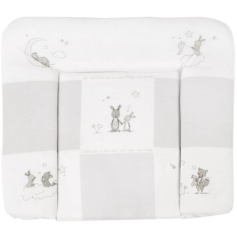 - Autres caractéristiques : Matelas à langer souple, 85x75cm, remplissage 100% polyester, surface 35% coton, 65% polyester, enduit de polyuréthane, dessous 100% polyester, bord relevé sur 3 côtés pour la sécurité du bébé, lavable et facile à nettoyer